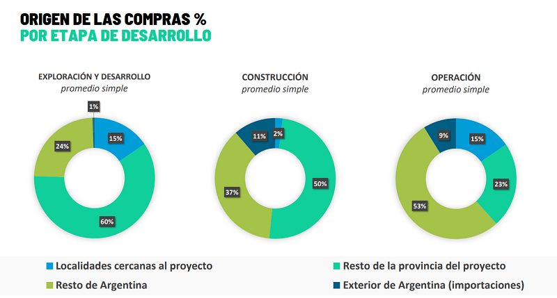 Del estudio se desprende que la mayor parte de los bienes y servicios demandados son adquiridos en Argentina, principalmente en la provincia donde se desarrolla el proyecto, mientras que las compras al exterior representan una porción menor.