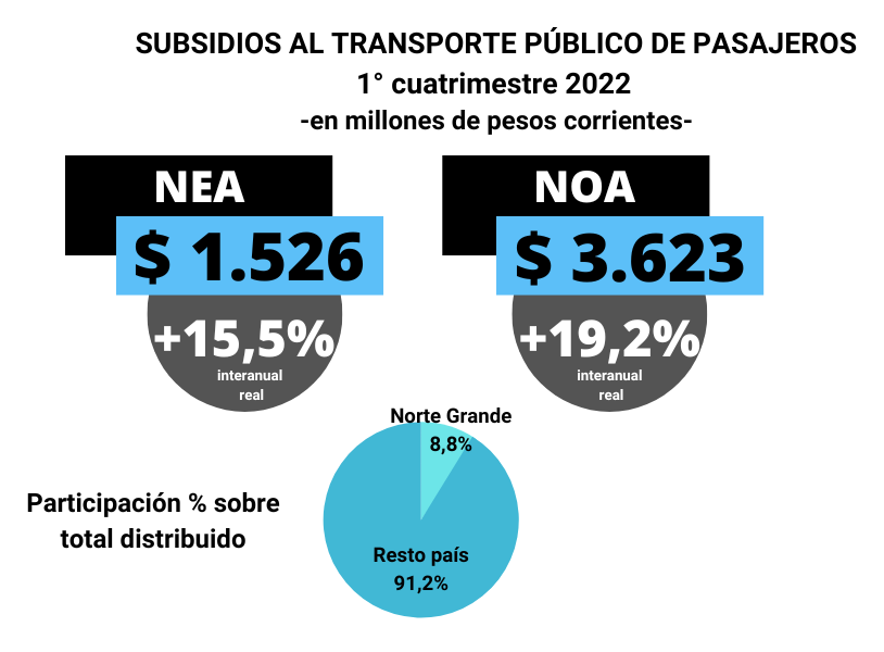 Este incremento se debió a haber experimentado el mayor alza entre las regiones del país: el total nacional muestra una variación del 4,4% real de los envíos en concepto de subsidios, pero en el NEA fue del 15,5% y en el NOA del 19,2%, siendo las dos únicas regiones del país donde estos fondos crecieron en doble dígito en términos reales.