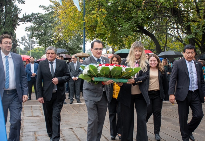 La ceremonia, realizada el pasado sábado en la plaza Francisco de Argañaraz y posterior desfile en Ciudad Cultural, contó con la presencia del gobernador de la provincia, Carlos Sadir; el intendente de la ciudad, Raúl “Chulí” Jorge; el presidente del Concejo Deliberante, Lisandro Aguiar, quien estuvo acompañado por los ediles: Leandro Giubergia, Néstor Barrios, Mario Lobo, Melisa Silva, Liliana Giménez, María Galán y Blanca Ontiveros; además de autoridades provinciales y municipales, legisladores nacionales y provinciales, representantes de instituciones educativas, de agrupaciones tradicionalistas y vecinos.