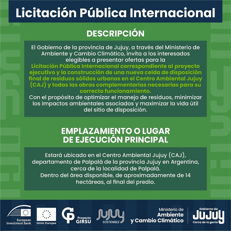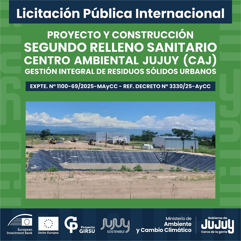 El Ministerio de Ambiente y Cambio Climático de Jujuy lanzó la Licitación Pública Internacional N.º 01/2025 para la construcción del Segundo Relleno Sanitario en el Centro Ambiental Jujuy.