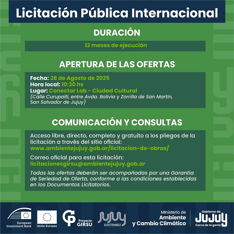 La apertura de sobres se prevé el día 28 de agosto, desde horas10:30 en instalaciones de Conectar Lab, ubicado en Ciudad Cultural de San Salvador de Jujuy.
