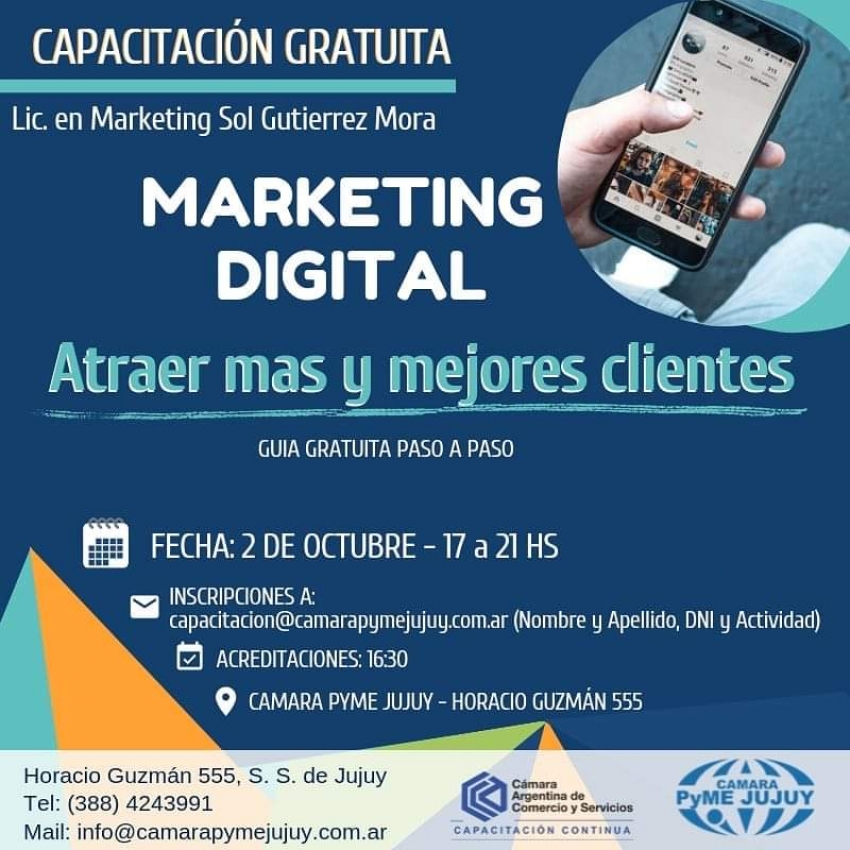 Cabe mencionar que esta propuesta se enmarca dentro del ciclo de capacitaciones gratuitas que Cámara Pyme de Jujuy y la Cámara Argentina de Comercio y Servicios organizan en conjunto para que los empresarios y emprendedores de la provincia puedan adquirir herramientas practicas para consolidar sus negocios.