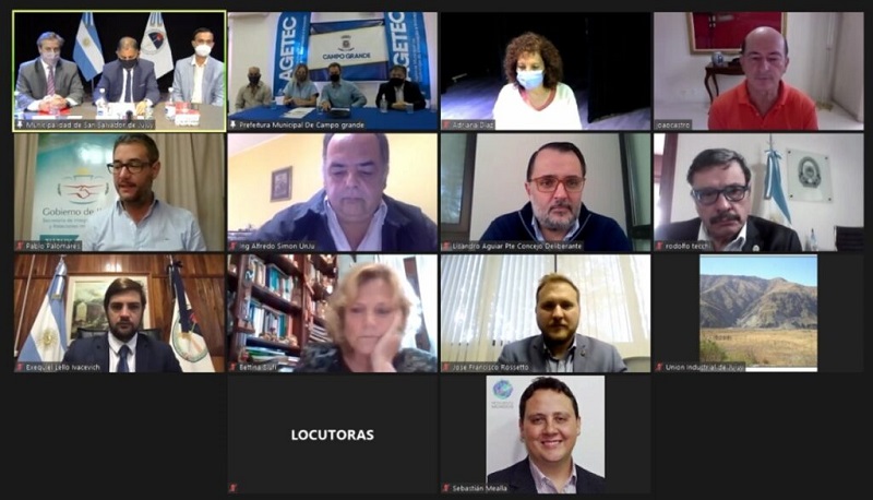 Desde el ámbito privado, también estuvieron presentes mediante videoconferencia el Presidente de la Unión Industrial de Jujuy, Nilo Carrión; el Presidente de la Cámara de Comercio Exterior Jujuy, Jorge Gurrieri y el secretario de la entidad, Sebastián Mealla; el Presidente de la Cámara de Servicios Mineros de Jujuy, Nicolás Galli; y el Presidente Unión de Empresarios de Jujuy, Ing. Luis Alonso