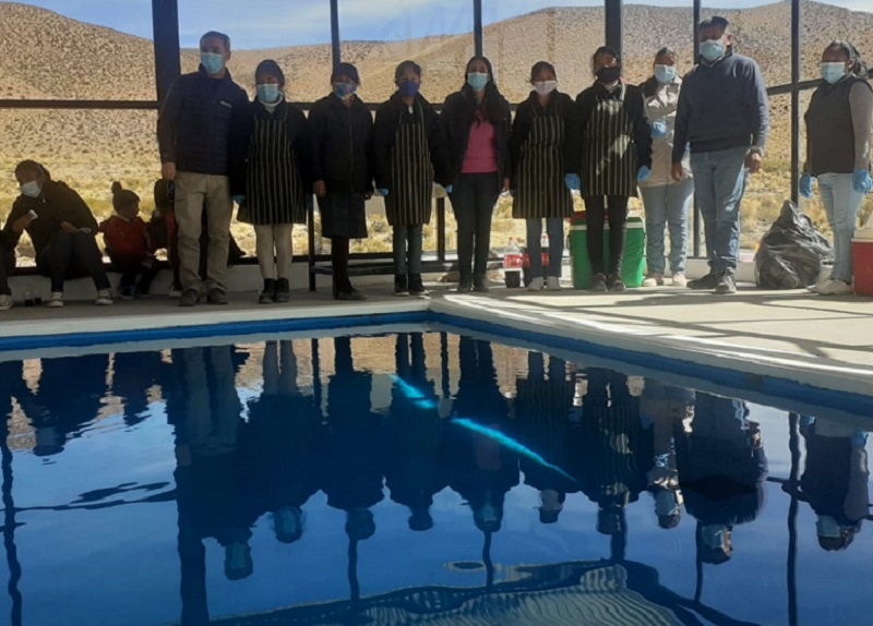 Minera Exar aportó además con un capacitador experto en turismo rural sostenible: Ramón Serapio, quien inicialmente preparó a 15 mujeres que estarán a cargo de la atención en el Complejo y ejecutarán actividades de perfeccionamiento durante todo el año. En idéntico sentido, el experto estuvo a cargo del asesoramiento en la elaboración de comidas regionales con orientación para recepción turística. Durante la inauguración, se ofrecieron empanadas de carne de llama, chicharrón con mote, sopa y anchi.