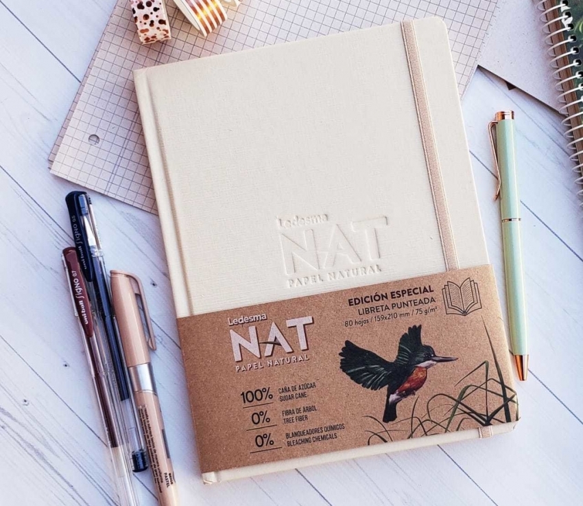 Los cuadernos espirales de Ledesma NAT incluyen hojas 100% a base de caña de azúcar, 0% de fibra de árbol y 0% de productos químicos para blanquear.