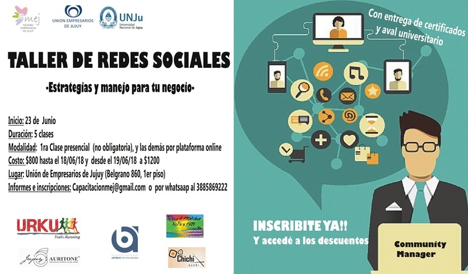 La comisión de Mujeres Empresarias de la Unión Empresarios y la Universidad Nacional de Jujuy dictarán el taller “Manejo y Estrategias de redes sociales para tu negocio” desde este sábado 23 de junio hasta el 16 de julio.