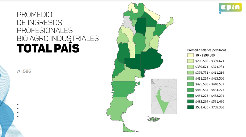 Según datos de CPIA, U$D 2.000 es el salario promedio para un ingeniero en el exterior, mientras que en Argentina es de $523.853. La brecha es mayor respecto a las profesionales agrónomas, ya que perciben 72% menos de los ingresos que percibiría en el exterior. La encuesta determinó que el salario promedio de una Ingeniera Agrónoma es de $379.245.