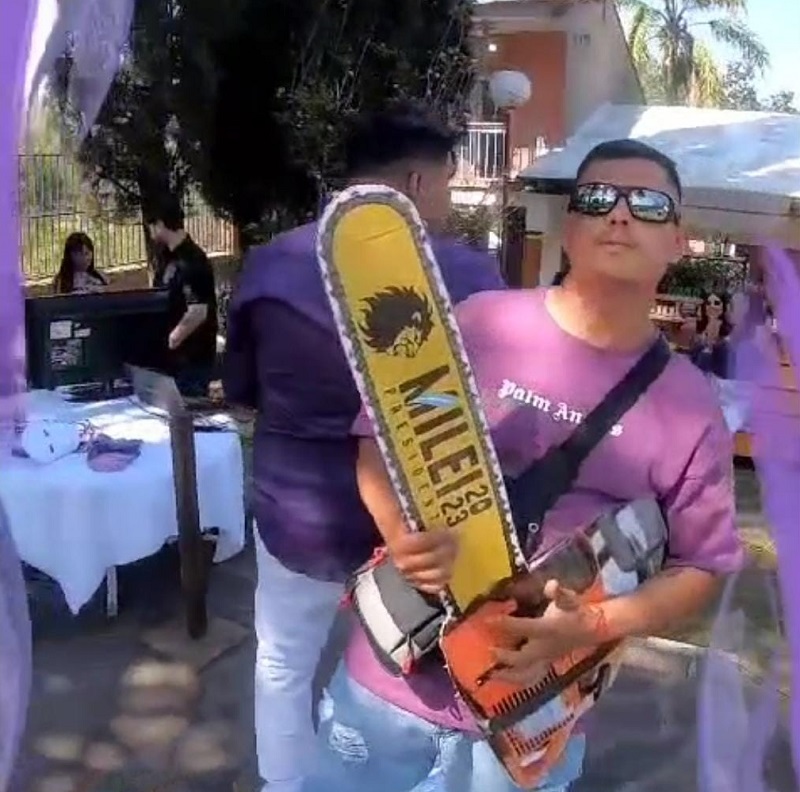 “La piñata era un banco central, que rompió el cumpleañero con un bate de béisbol. Adentro, tenía unos billetes de 200 pesos argentinos (reales), y monedas de chocolate. Pusimos una base de videos 360°, con caretas del candidato y motosierras. Las bolsitas sorpresa para los invitados contenían dinero, monedas de chocolate, un antiácido, chicles y hasta una boleta de votación”, continuó Aguirre.