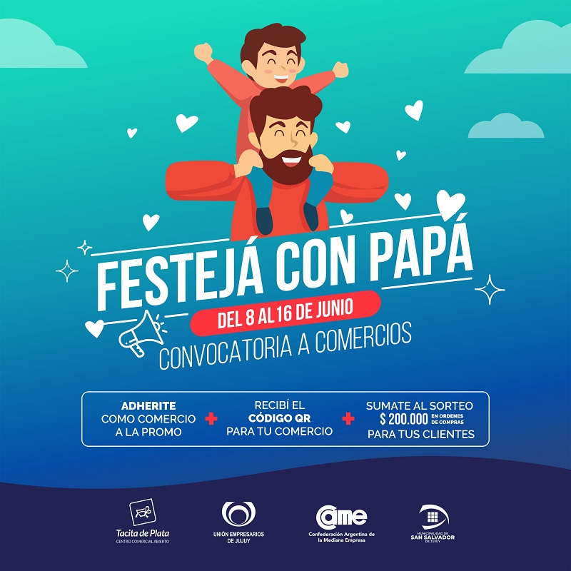 La Unión Empresarios de Jujuy, la Confederación Argentina de la Mediana Empresa - CAME y el municipio capitalino, convocan a comercios de la provincia a participar de la instancia promocional “Festejá con Papá”, con sorteos para quienes compren en locales adheridos.