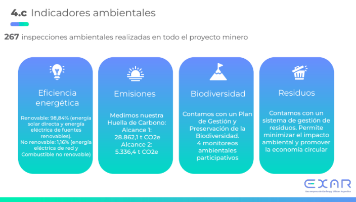 "El cuidado del medio ambiente es un pilar fundamental para EXAR y un eje central en su búsqueda de sostenibilidad. En este contexto, el 99% de la energía que utiliza la compañía proviene de fuentes renovables, destacándose el empleo de energía solar y eléctrica como parte de su compromiso con la eficiencia energética", aseveró el informe.