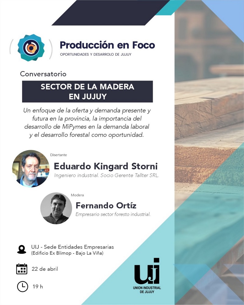 La Unión Industrial de Jujuy invita a participar del segundo conversatorio del ciclo “Producción en Foco”, esta vez dedicado al sector foresto industrial, uno de los pilares estratégicos para el crecimiento económico sostenible en la provincia.