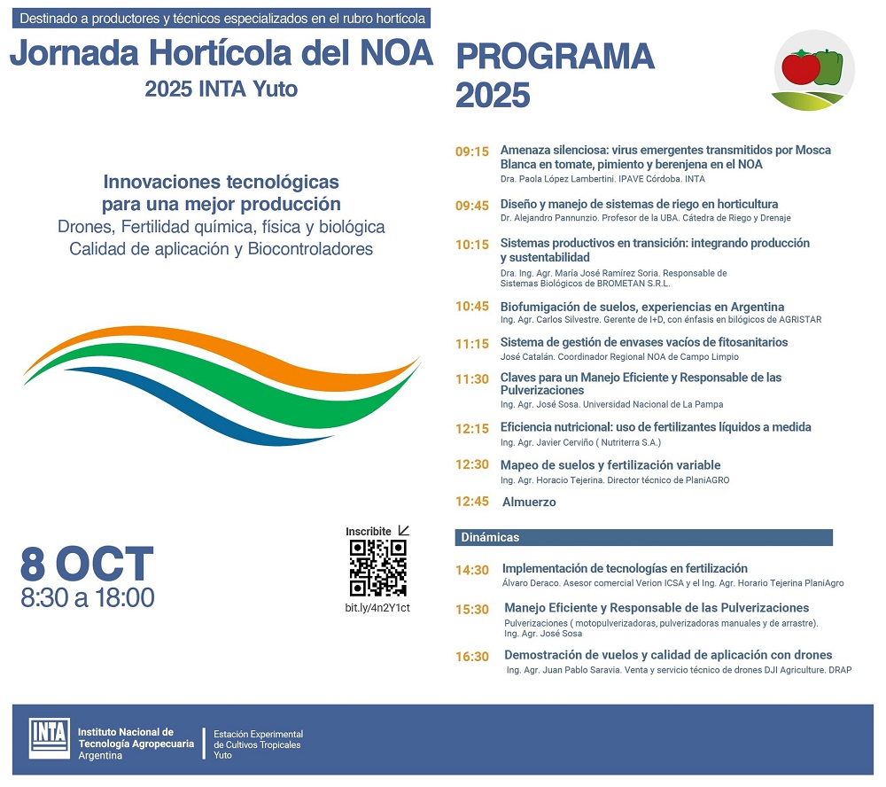 Bajo la propuesta de brindar innovaciones tecnológicas para una mejor producción, este 8 de octubre en el INTA Yuto se concretará la 3° edición de la Jornada Hortícola del NOA.
