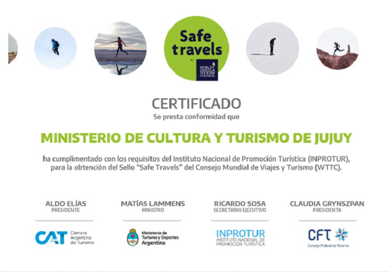 La distinción fue otorgada por el Consejo Mundial de Viajes y Turismo (WTTC) a través del Instituto Nacional de Promoción Turística (INPROTUR), luego de haber sido aprobadas las actuaciones de validación cursadas por la Subsecretaría de Calidad Turística, el Consejo Federal de Turismo (CFT) y la Cámara Argentina de Turismo (CAT). Así, se aprobó la adhesión de Jujuy al Sello Safe Travels.