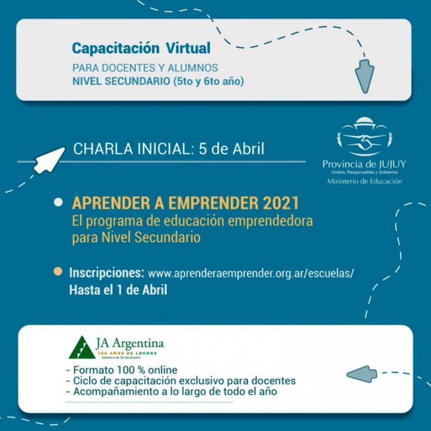 El Ministerio de Educación de la provincia invita a las instituciones educativas del Nivel Secundario a inscribirse al programa de Educación Emprendedora “Aprender a Emprender 2021” desarrollado por la fundación Junior Achievement.