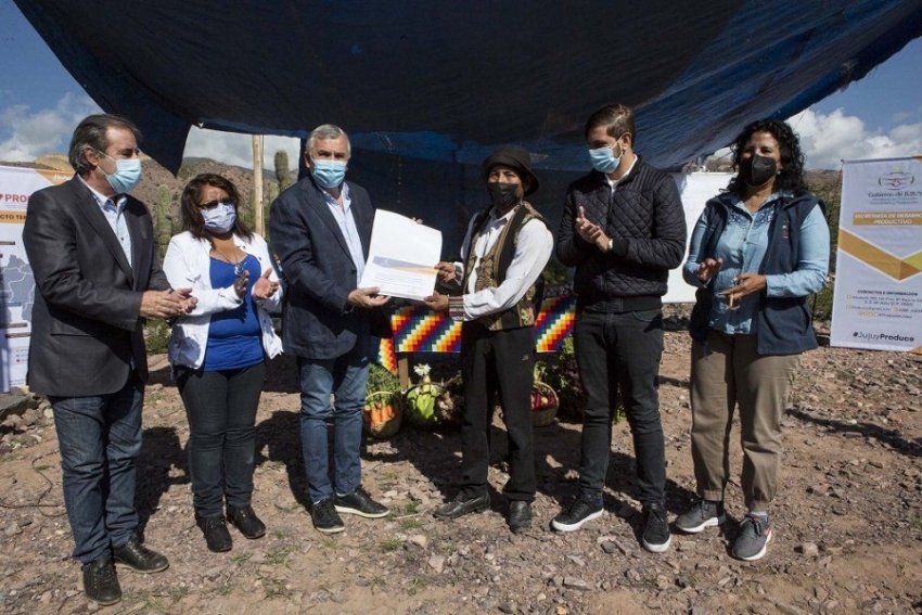 Gerardo Morales hizo entrega de certificados de financiamiento del Programa de Asistencia Económica para Productores Familiares del Norte Argentino (PROCANOR) en El Perchel, a fin de contribuir la inserción de la agricultura familiar en cadenas de valor emergentes.