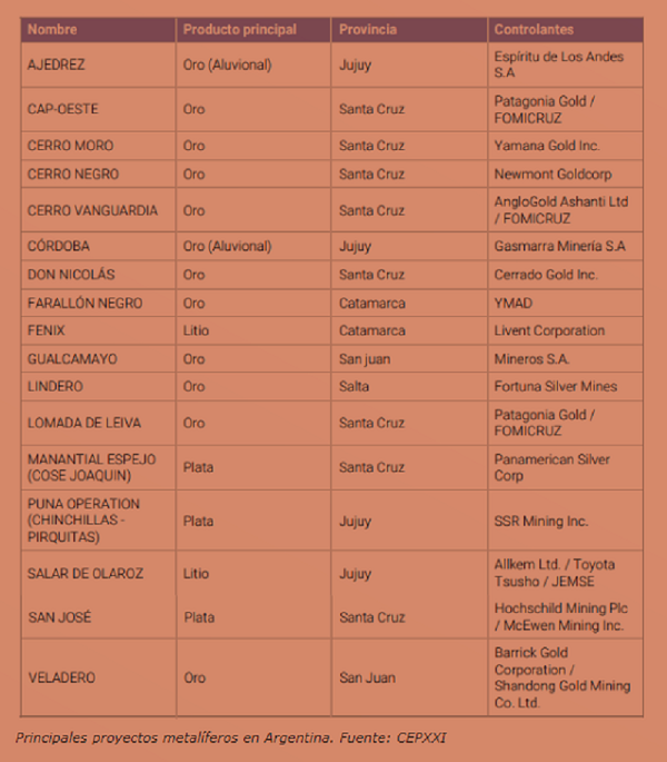 - Argentina cuenta con 18 proyectos metalíferos activos: 12 con el oro como metal principal, 3 de plata, 2 de litio y 1 de carbón. El plomo y el zinc emergen como subproductos.