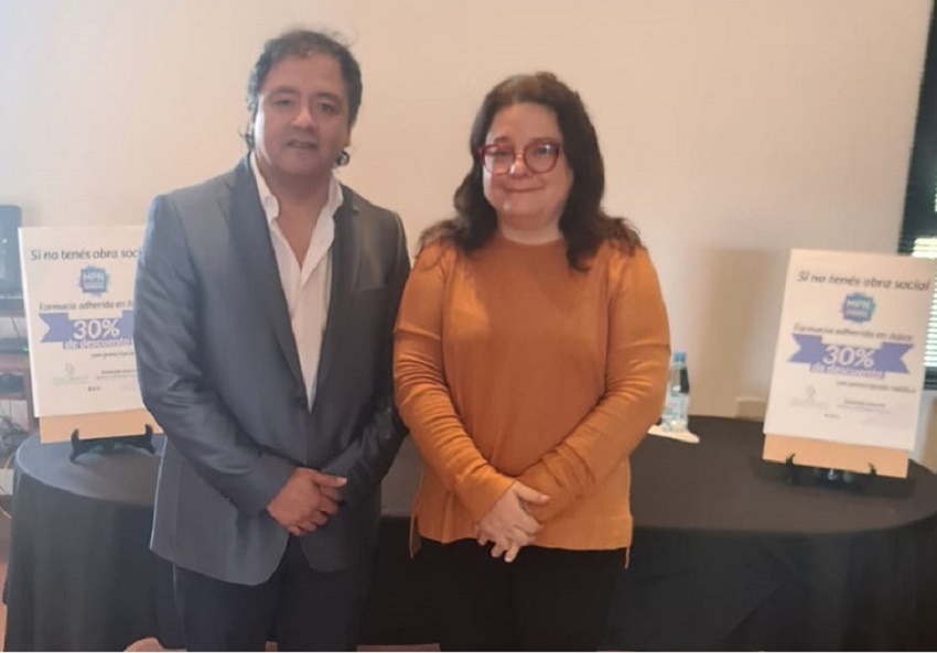 Estuvo acompañado por la secretaria de Relaciones con las Obras Sociales y Mutuales del Colfarjuy, Claudia Martino, quien enfatizó el compromiso que hace el sector farmacéutico "para que una gran parte de la población jujeña se beneficie con esta acción para el acceso a los medicamentos seguros y confiables".