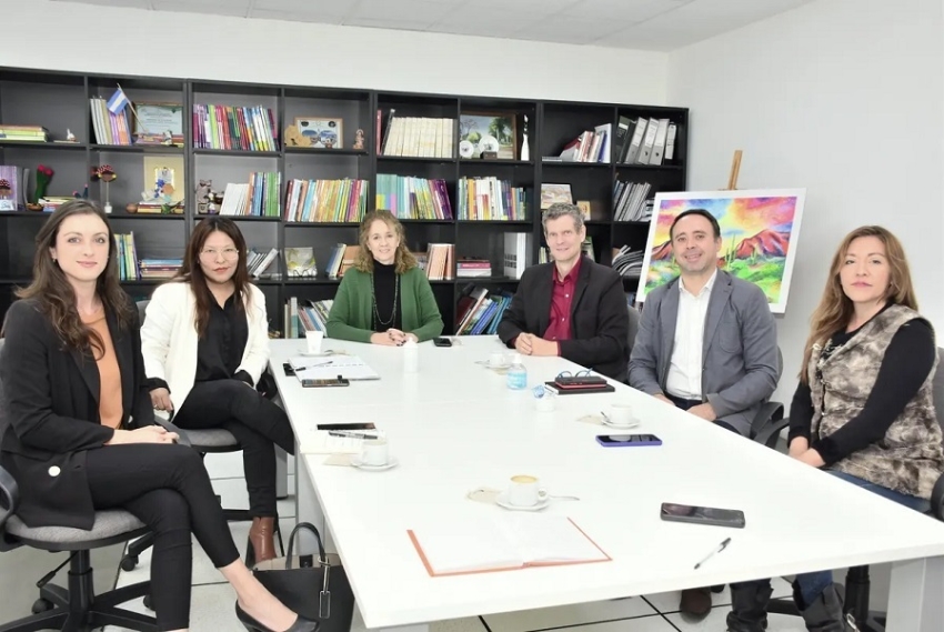 En el marco del proyecto de Fortalecimiento Institucional de las capacidades técnicas para el desarrollo del litio que lleva adelante el Gobierno provincial en conjunto con el Banco Interamericano de Desarrollo- BID, la titular de la cartera educativa, María Teresa Bovi, recibió a Miguel Soler, secretario de Minería e Hidrocarburos; Julio Pardo y Celeste Ballari, coordinadores del BID, para definir detalles acerca de una nueva propuesta de Formación Docente relacionada a la producción minera y la industria del litio.