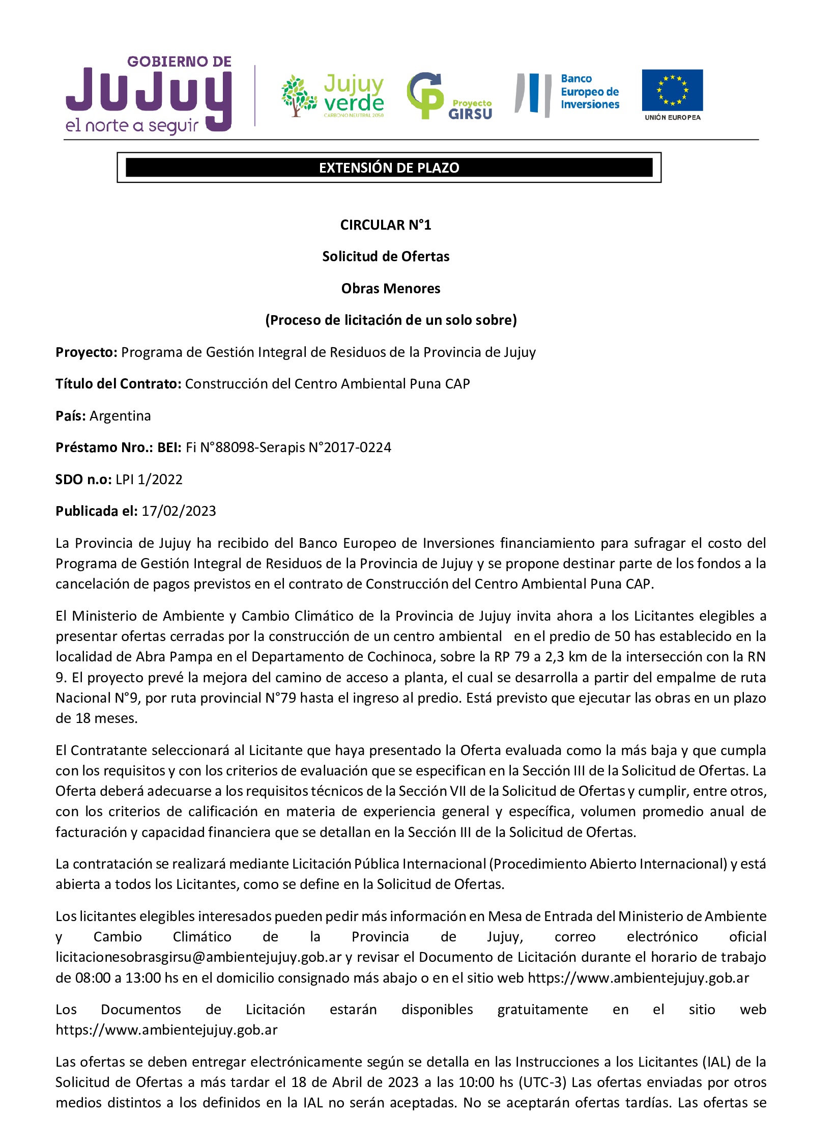 En el marco del Programa de Gestión Integral de Residuos de la Provincia, el Ministerio de Ambiente y Cambio Climático de Jujuy sostiene la convocatoria para presentar ofertas cerradas por la construcción de un Centro Ambiental en Abra Pampa.