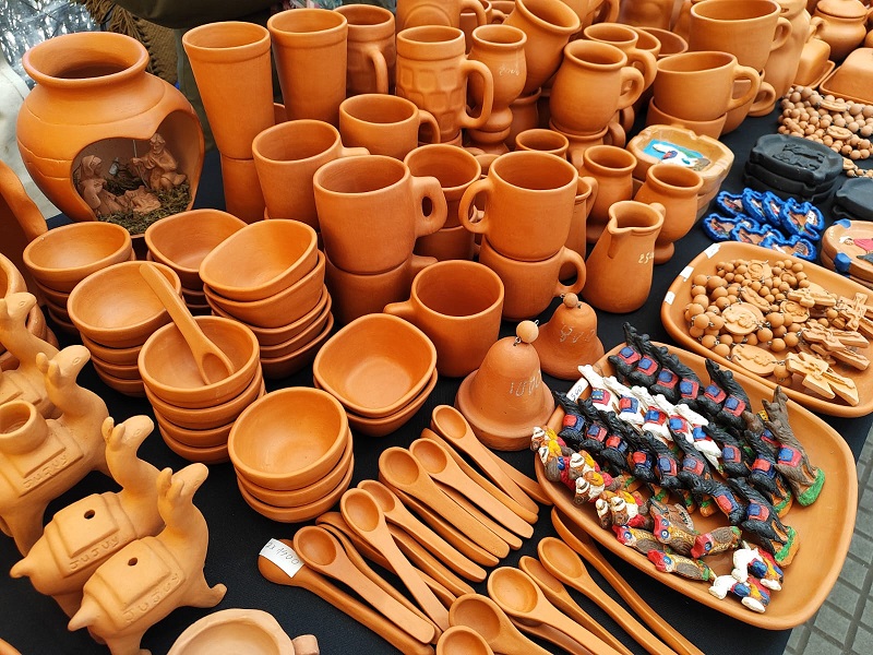 Flora ofrece en su puesto –ubicado en las carpas de Plaza España- adornos y utensilios de cocina rústicos, en color naranja intenso, azucareras y tazas desde los 3 mil pesos; jarras y teteras a 5 mil pesos, además de fuentes y ollas con tapa que, dependiendo del tamaño, van desde los 6 mil a 10 mil pesos.