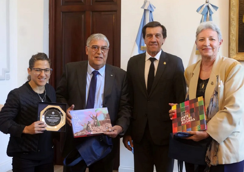 También fue invitada a la sede de gobierno, donde se entrevistó con el gobernador Carlos Sadir. “Es una inspiración para niños y jóvenes que practican el deporte”, expresó el mandatario, al entregarle una placa recordatoria por su gran trayectoria y diversos productos artesanales elaborados en la provincia.