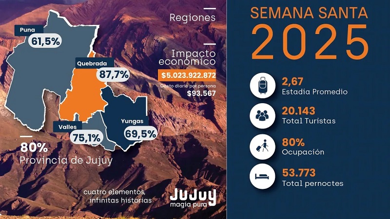 Durante el fin de semana largo de Semana Santa, un total de 20.143 turistas recorrieron Jujuy y generaron un impacto económico superior a los 5.023 millones de pesos.