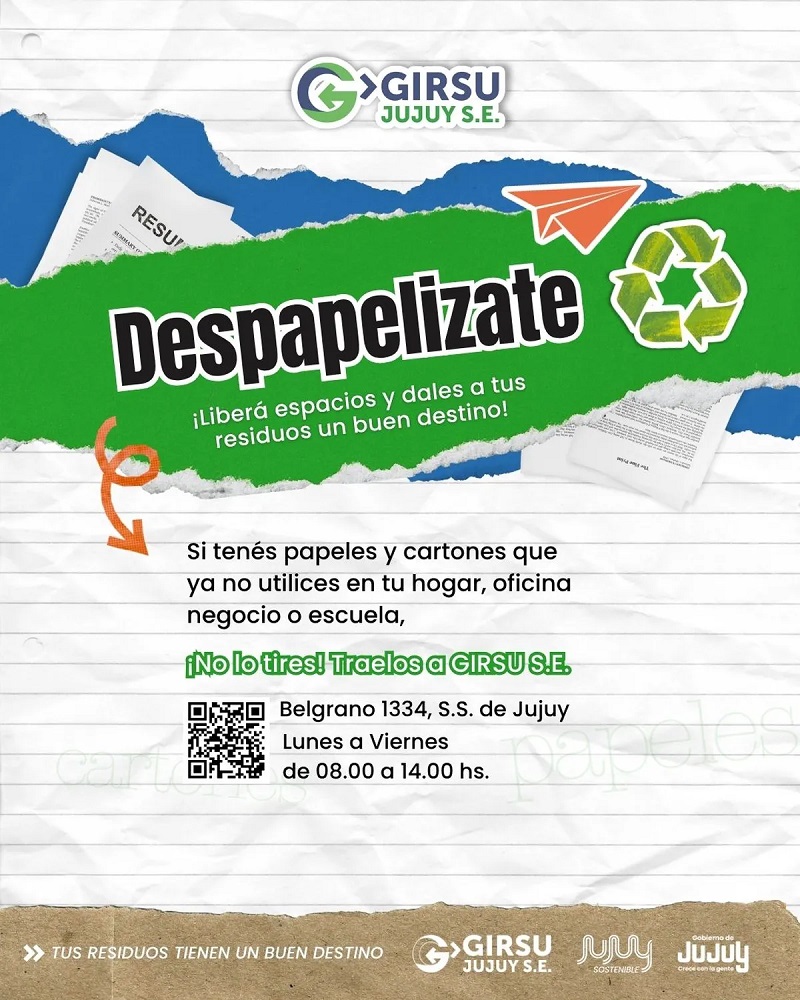 "Con esta acción, GIRSU Jujuy busca que la ciudadanía incorpore la separación en origen como práctica cotidiana, demostrando que pequeños gestos, como separar el papel, generan un gran impacto en el camino hacia una provincia más limpia y sustentable".