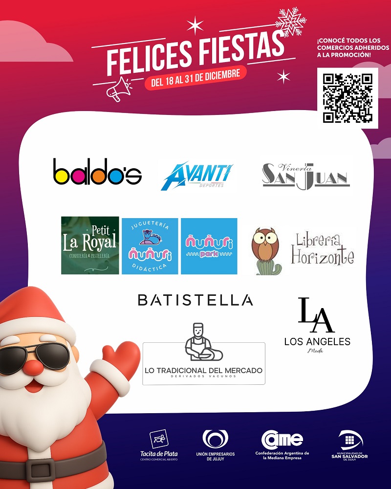 La Unión Empresarios de Jujuy (UEJ), junto a la Confederación Argentina de la Mediana Empresa (CAME) y la Municipalidad de San Salvador de Jujuy, inician la Promo "Felices Fiestas", una acción comercial que busca impulsar el consumo, fortalecer al comercio local y ofrecer beneficios concretos a vecinos y vecinas durante las celebraciones de fin de año.