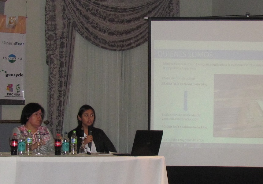 En el encuentro, dos voceras de Exar enfatizaron los ejes de la empresa que producirá litio en el Salar de Cauchari-Olaroz: Natalia Gimenez, Jefa de Medioambiente; y Mónica Echenique, Jefa de Relaciones Comunitarias.